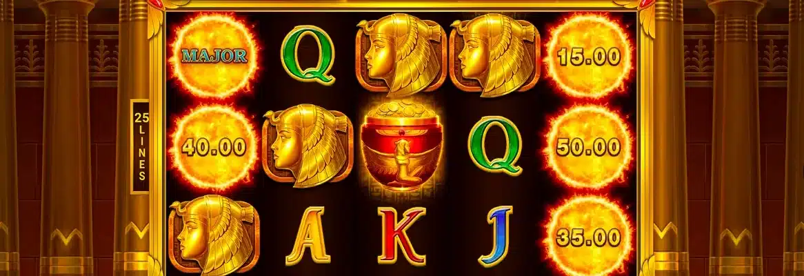 Слот Sun of Egypt від провайдера 3 Oaks з класичною єгипетською тематикою, який переносить гравців у світ давніх фараонів та таємничих скарбів. Гра розгортається на п’ятибарабанному полі з трьома рядами та 25 фіксованими лініями виплат. Слот пропонує гнучку систему ставок від 0.25 до 90.00 за обертання. RTP слота становить 95.77%, а волатильність оцінюється як вище середнього.